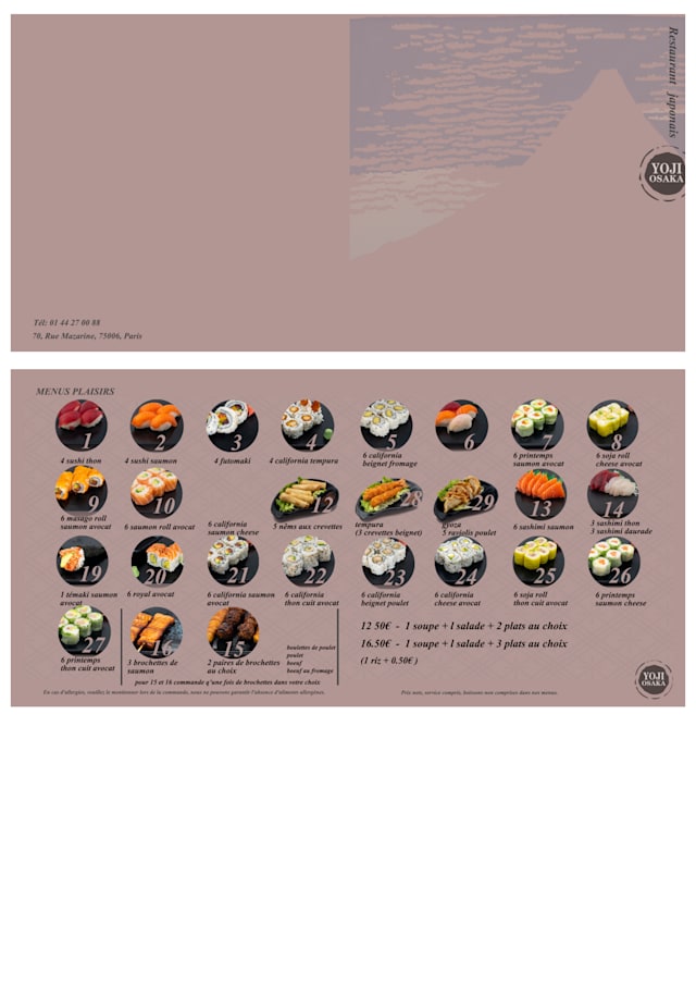 9.5/10The two keys elements in good Japanese sushis are freshness of the fish and the softness of the cooked rice. YOJI Osaka delivered both. The sushis were really nice and not small (as sometimes you can find in restaurants). We ordered all sorts and With the app discount, it was a great deal. We also had some yummy yakitoris which were cooked as should be. Be aware though that the app discount does not apply to the specialty rolls (they are part of the menu section, so not discounted). But it was much fine in the end. Plenty to order from. My kids and I had a great dinner !