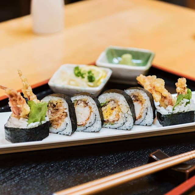 Temaki de tempura de langostino y aguacate