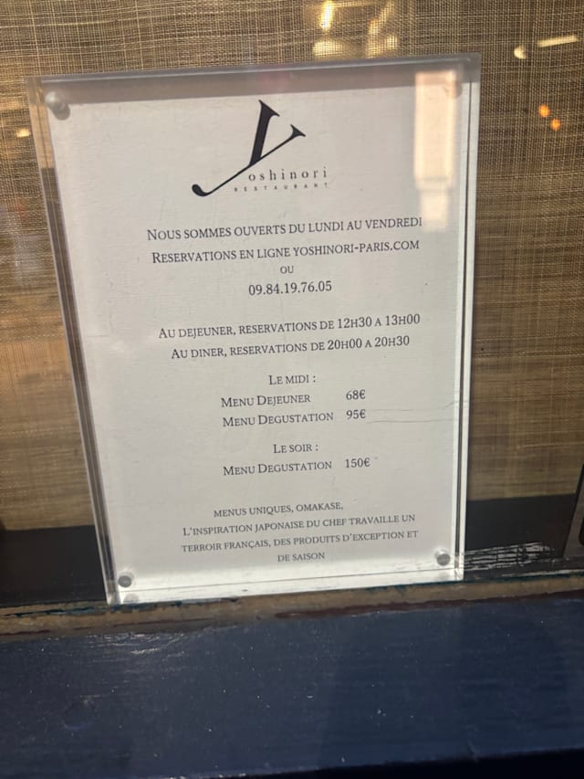 10/10Walking into Yoshinori feels like stepping into a serene culinary oasis. Nestled in the heart of Paris, this intimate restaurant is helmed by an extraordinary chef, bringing unparalleled sophistication and artistry to every dish. We will be back.