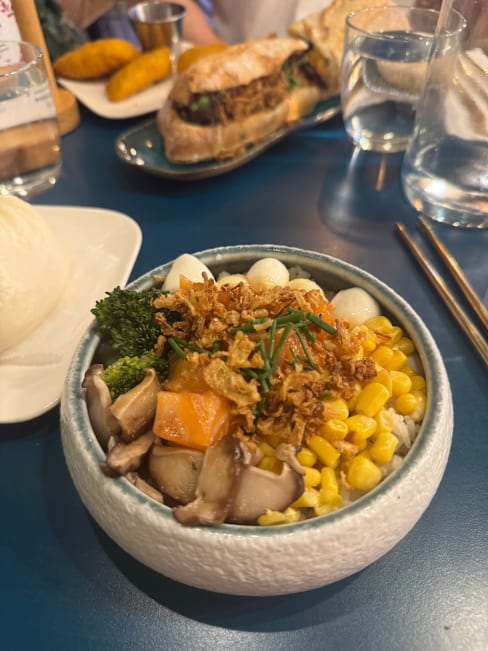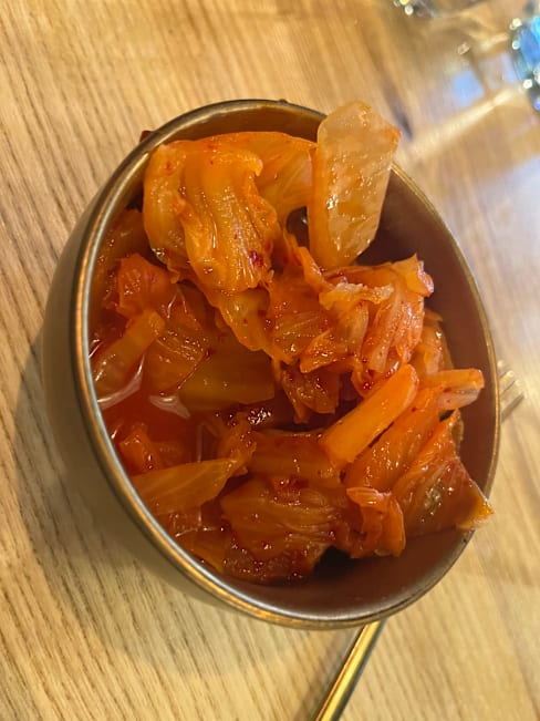8/10Kimchi, Cambodian lak lok beef and french red wine. Many mochi flavours for dessert.