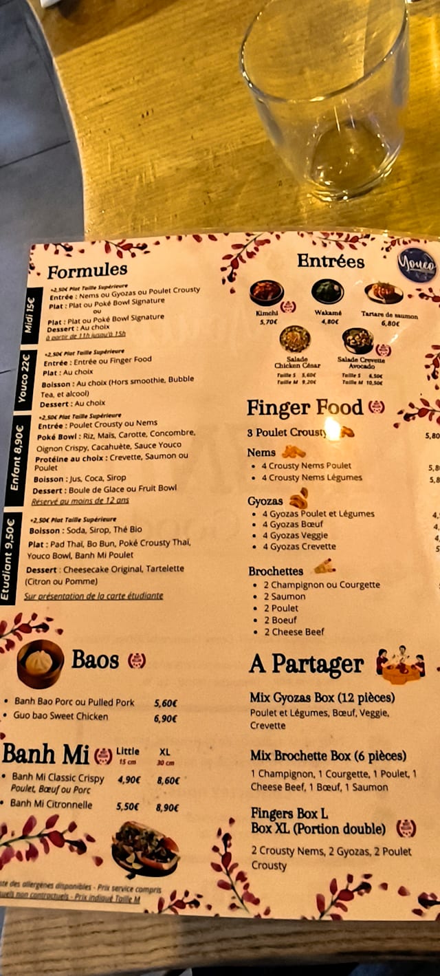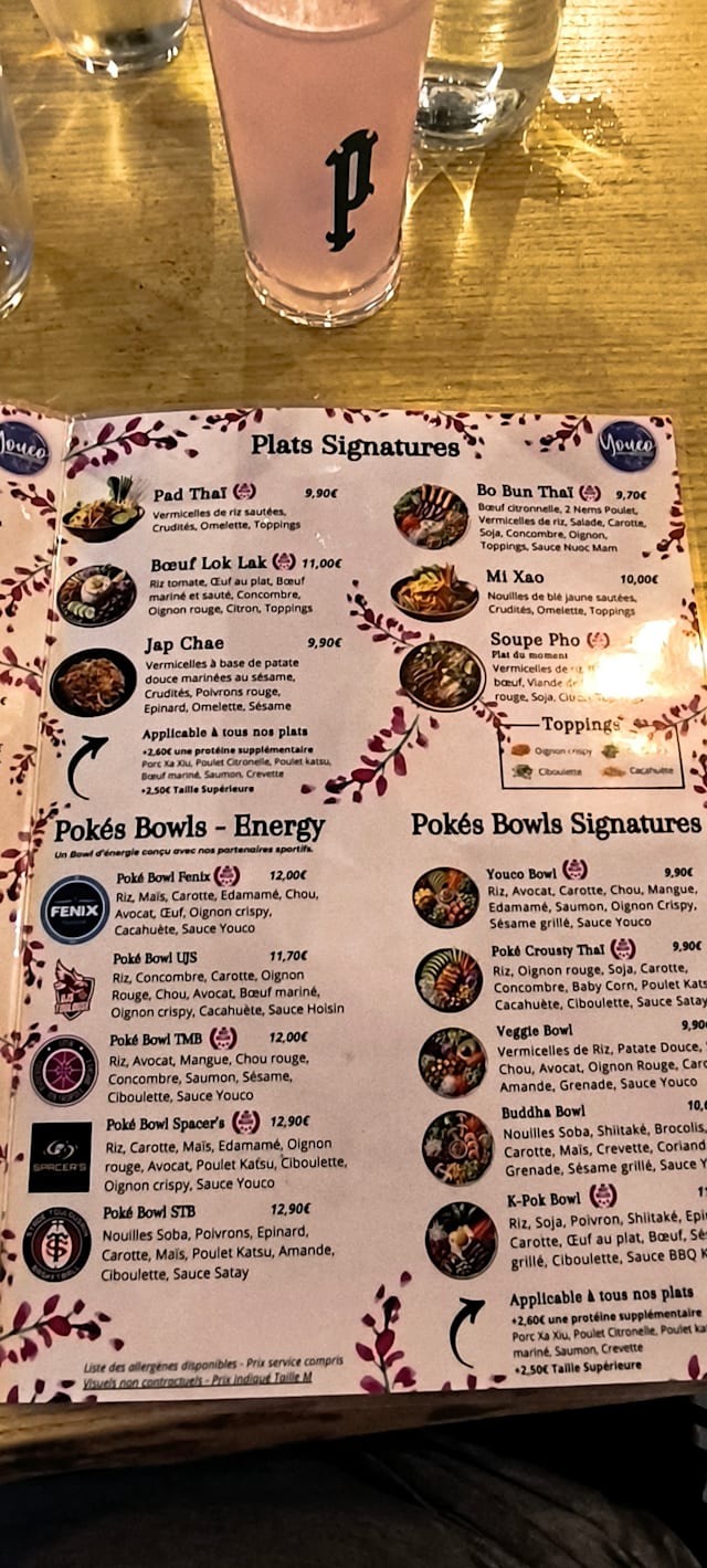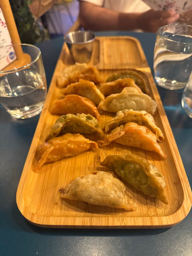 8/10Kimchi, Cambodian lak lok beef and french red wine. Many mochi flavours for dessert.