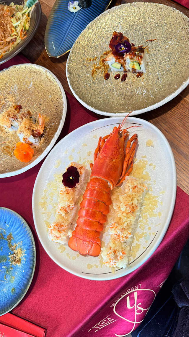 - Ravioli con polpa di astice e surimi, tobiko e edamame
