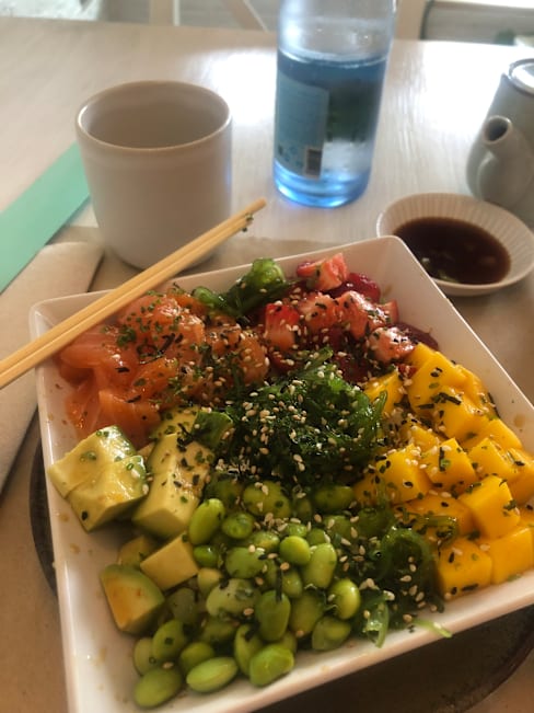 9/10One of our favourites. Their poke bowls are the best. Lovely staff. Reasonable prices. Not far from the centre at all. I usually try to keep these secrets to myself so I can get a seat.but they deserve more clientele.