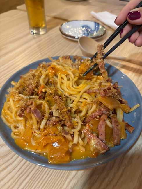 9/10The €11 lunch special is a great bargain - a full entrada and a full order of fusion (non-soup) ramen, plus a drink. The chewiness of the hand pulled noodles is the real thing. The Asian pop music videos on the TV don't match the music on the speakers, which is a little weird.