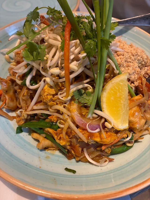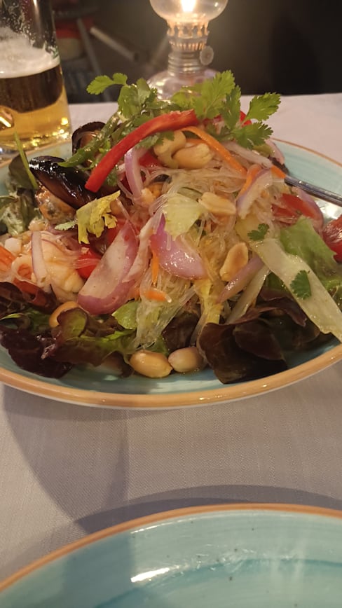 4/10Quick to be seated and have order taken, but we booked an early table so wasn't busy on arrival. Had drink orders taken, wrong drinks arrived. The food looked lovely and fresh, but shrimps were mushy, so couldn't eat as felt they weren't cooked properly. Had a beef salad and the beef looked boiled, no sear on whatsoever. The food didn't taste authentic Thai, was very sweet in comparison to any other Thai restaurant we have been to. After recieveing food, noone came to check if food was OK, or if we wanted more drinks. Had to wait around 20 minutes to get someone's attention to get the bill as all the staff were just rushed off their feet. They were too busy to give good service. Tables around us were asking where their food/drinks were after waiting a long time. Overall not a great experience, didn't taste like authentic Thai food and wouldn't bother if you want polite, friendly service.