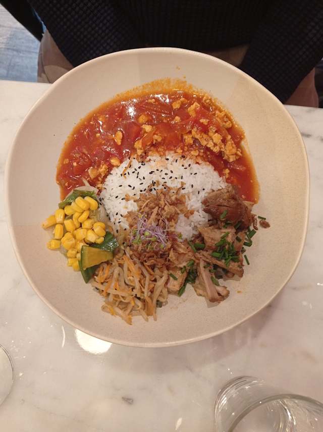 - Mixian(vermicelle de riz), crevette, oeuf de caille, noix st-jacques, légumes du jour