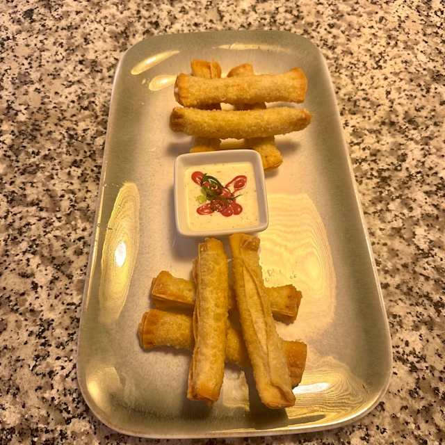 - Frito de enrollados de harina con queso y acompañado con crema huancaina.