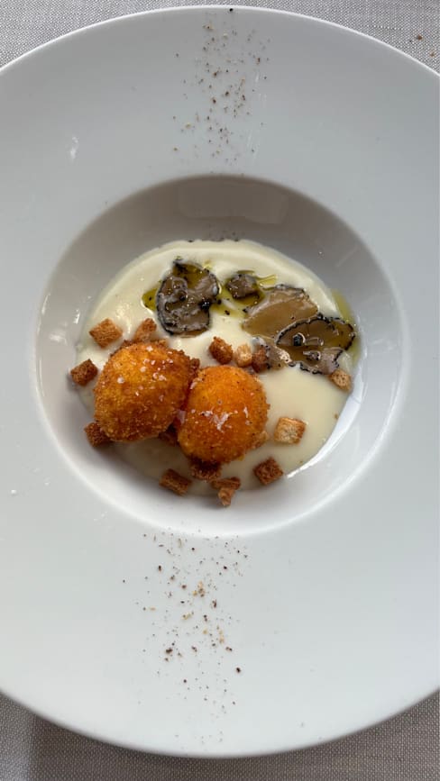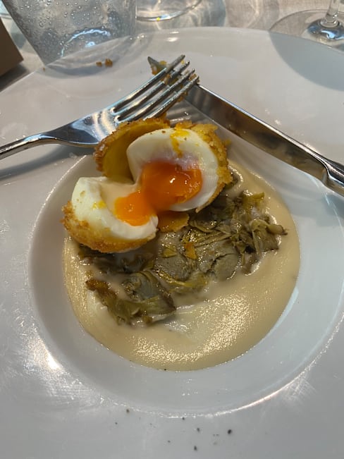 9/10Beautiful location with really friendly attentive staff. Food was beautiful, far more refined than rustic. Crispy egg with artichoke and pecorino cheese sauce was a revelation. It also helped that we’re staying here and the walk back to the room was 10 yards