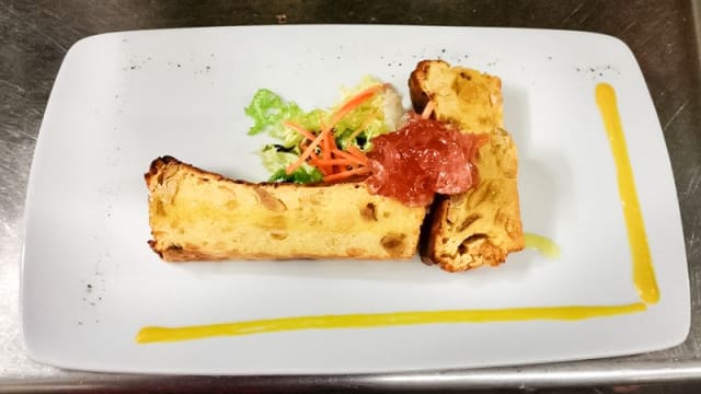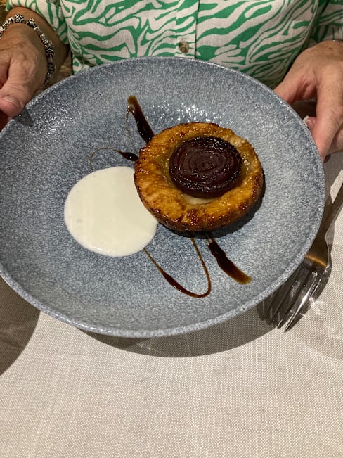 10/10Excelent food. A perfect balanced onion tart. Very well cooked steak. Polite and fast service. Beautful location.