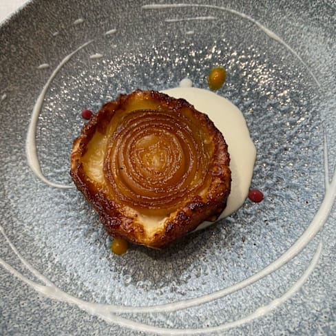 10/10Excelent food. A perfect balanced onion tart. Very well cooked steak. Polite and fast service. Beautful location.