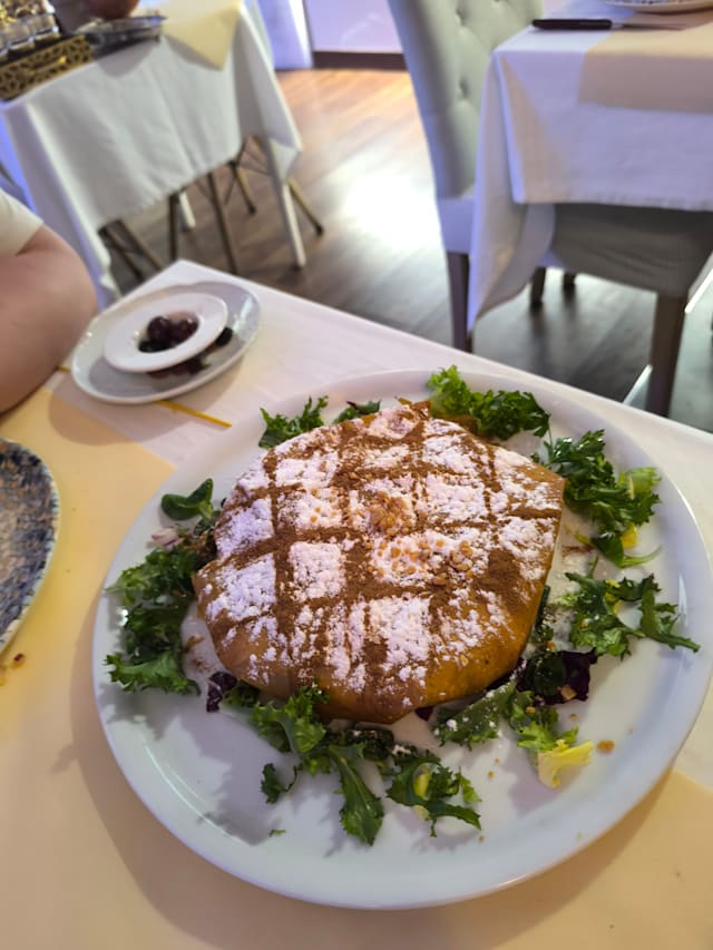 8.5/10The pastela was very good! The vegetable triangles (can't remember the name) were too spicy for us. We really enjoyed the sweets at the end ;)