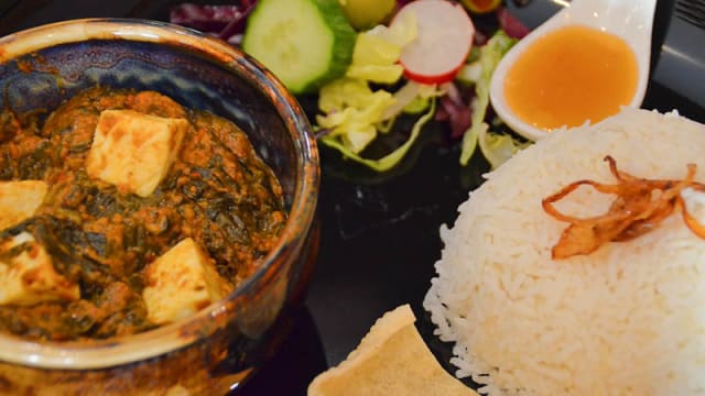 5.5/10I recently visited Zaiqa Indian and enjoyed the vibrant flavors and authentic taste of the vegetarian meal. The paneer tikka masala and garlic naan were delightful, with rich spices that truly stood out. The variety on the vegetarian menu was impressive, catering to different palates. However, the service was a bit slow during our visit, which slightly affected the overall experience. While the staff was polite and attentive, it took longer than expected for the dishes to arrive. Despite this, the food quality made up for the delay, and I’d recommend it to anyone looking for genuine Indian vegetarian cuisine. Just be prepared for a little extra waiting time, especially during peak hours!
