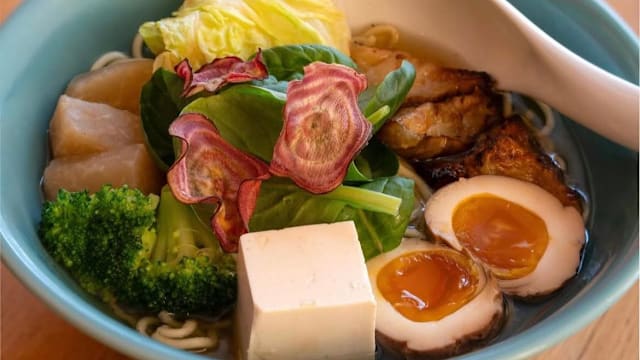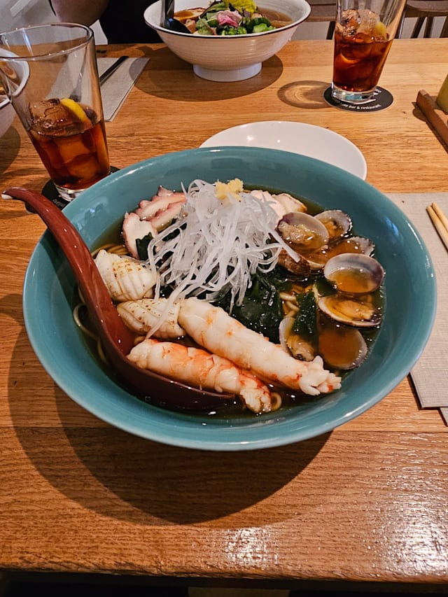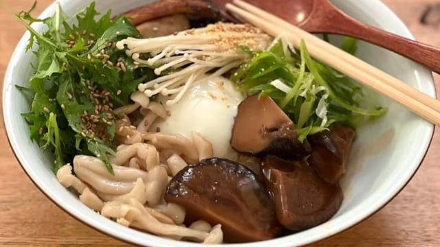 Chirashi don con salmone, ebi, ikura e shiso€16Ciotola di riso bianco akitamochi con filetto di salmone crudo, gamberi ( ebi) cotti sgusciati, uova di salmone ( ikura*), foglia di perilla ( shiso), frittatina giapponese ( tamagoyaki), sesamo dorato, dressing al ponzu