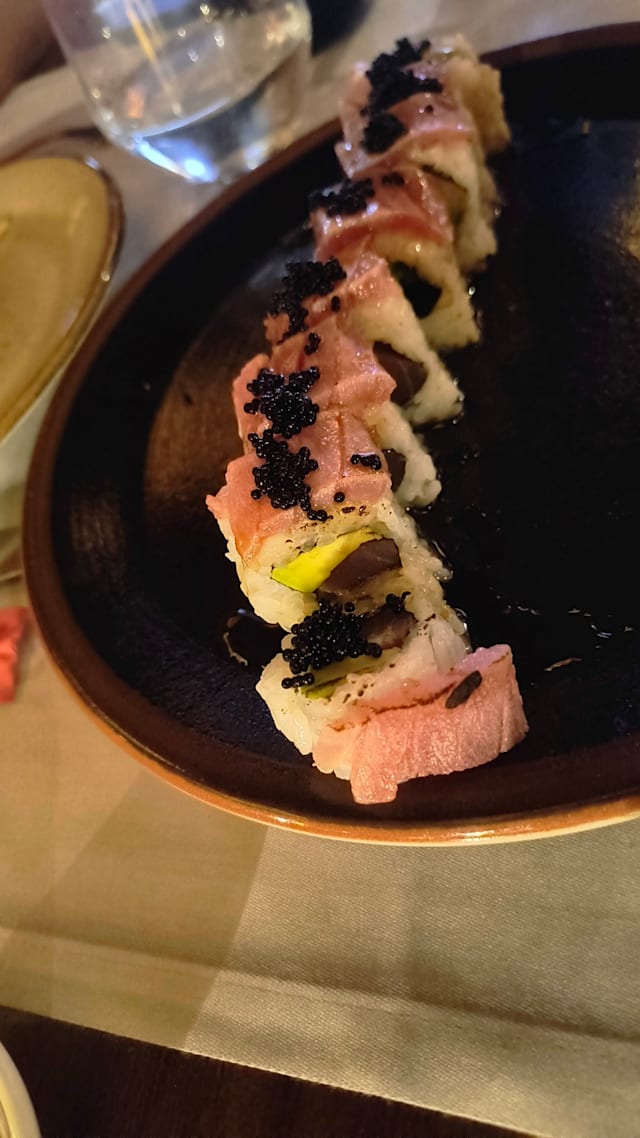 Carpaccio de corvina con trufa, pimienta y ponzu