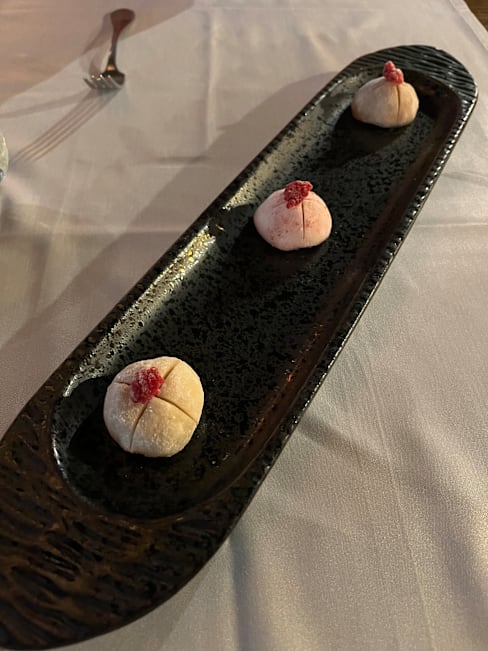 7.5/10We did the New year’s set menu for 98.50€. The menu was expense for the quality of the food. Served a small lobster that was deep fried and unable to eat since overcooked. The red wine and champagne were of poor quality. For dessert mini mochis were served. Whole meal was not worth the €98.50.