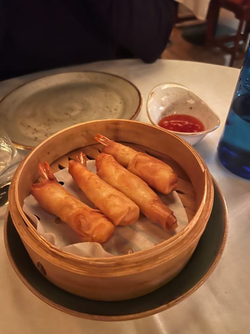 5.5/10this restaurant is well decorated although a little dark. The table for 2 was a litle low and a little uncomfortable. The Maitre'd was knowledgeable and attentive. The colored dumplings are not a good sign, The dumpling dough should be left to the natural color. Black and deep purple /red are not very appetizing. The food portions are quite large. No need to add edamame to the fried rice (best to keep it simpler) The pad thai was not an authentic thai recipe, Only the noodles used and the peanuts were correct. Only 4 prawns and there were too many and incorrect vegetables. The flavor was not right and there was too much sugar. I will not be recommending this restaurant. Anyone who has had more authentic Asian food will not be happy and definitely not at those prices. Thee euros for 33cl of sparkling water is an abuse.
