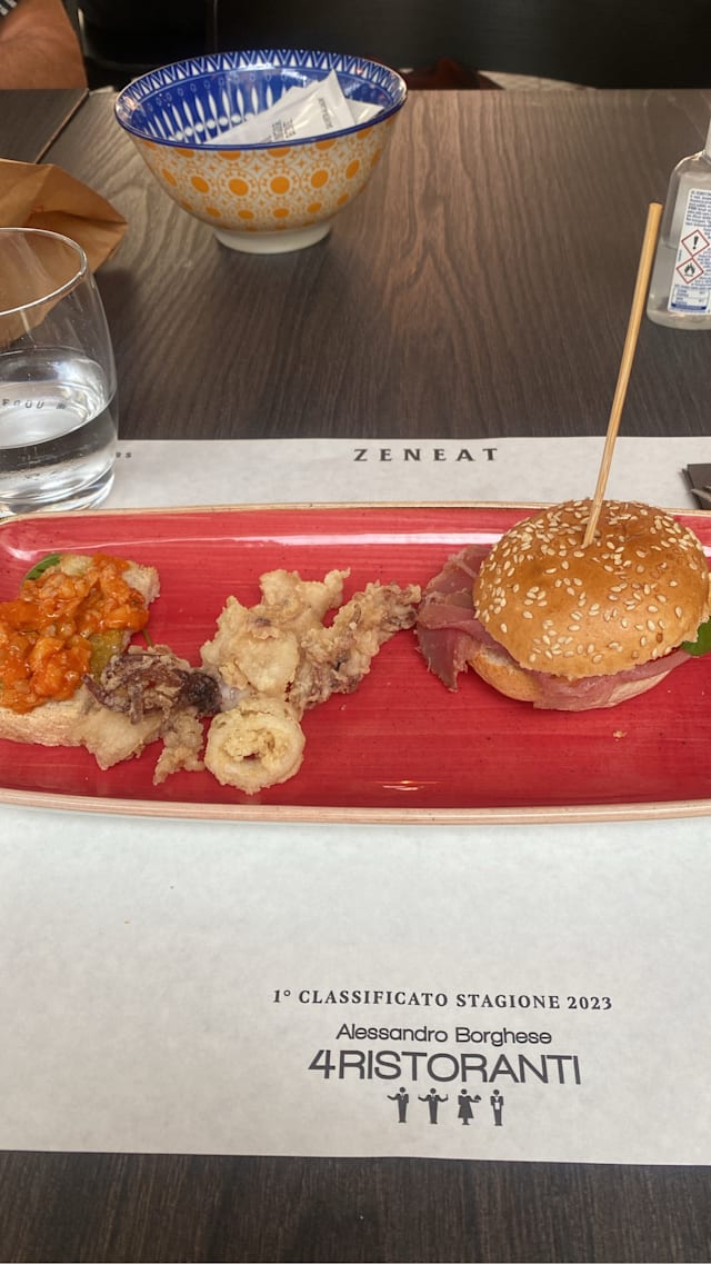 5/10We were not very hungry and were eating early so we ordered insalatone with chicken, some olives and a bottle of local wine. The salad was terrible - small, a few nuts, dry chicken pieces, iceberg lettuce..... very disappointing. The service was good and the room pleasant but I would NOT recommend the food. If a chef does not take care with the simple things, like a dinner salad, I do not trust the food.