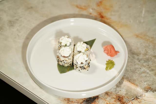 - Tonno, avocado, cetriolo, tobikko, mango, platano fritto e salsa special (6pz)
