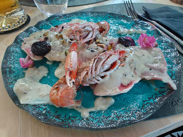 Fresh pasta filled with prawns and pistachio, served with truffle sauce.