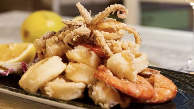 Frittura con farina di riso di gamberi e calamari