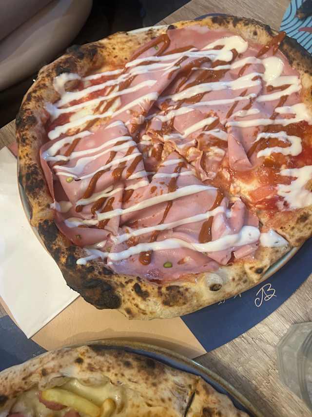 Metà margherita e metà ripieno con ricotta di bufala, salame dolce e fior di latte della penisola