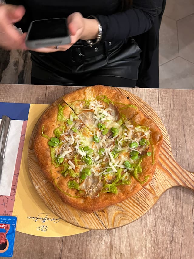 Pomodoro san marzano dop, olive nere di caiazzo, carciofi in padella, prosciutto parmacotto, funghi freschi saltati in padella, fior di latte, olio evo e basilco