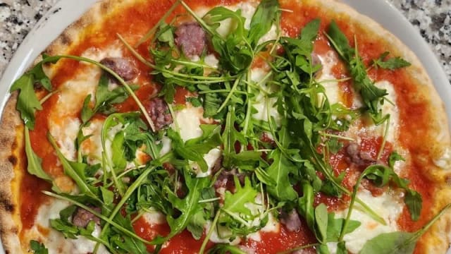 Pomodoro san marzano, bufala campana, acciughe, origano, in uscita ricotta salata, basilico fresco e olio “quello buono”