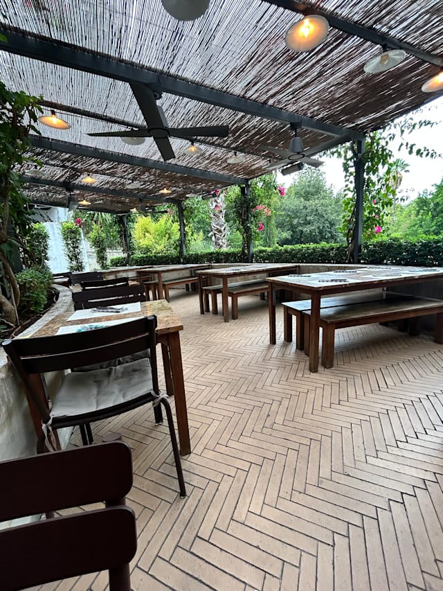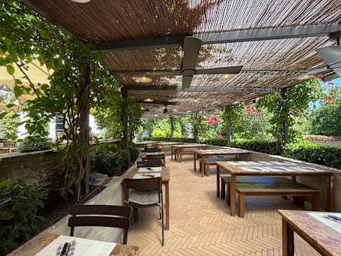 10/10Yummy in very beautiful surroundings inside and a stunning outside with lots of shade and plants. Not cheap but worth it!