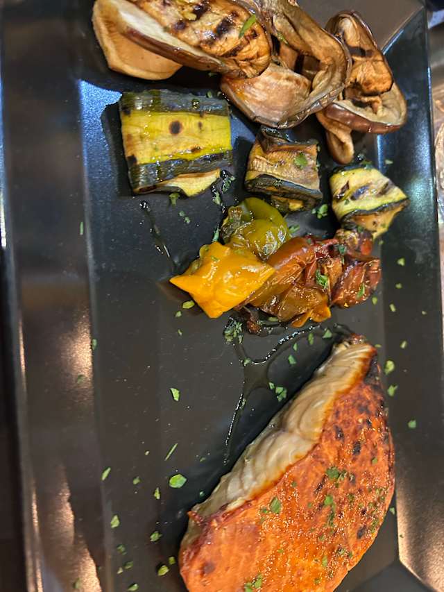 - Trancio di salmone grigliato e verdure grigliate