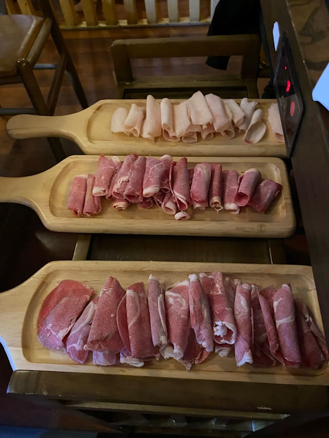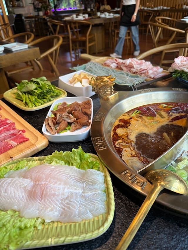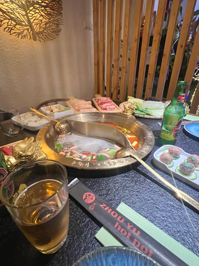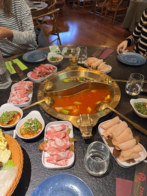 9.5/10LOVED! I was missing hotpot after a trip to China and this totally hit the spot, you get so much for the price of the hot pot menu (49CHF), the meats, seafood and vegetables to put in your hotpot are varied and fresh, and the sauce bar had lots of options. Would return in a heartbeat! The ladies doing the service were really friendly and the setting of the restaurant was really nicely decorated. I would only add a little bit of music to create more of an atmosphere but apart from that, it was a 10/10!