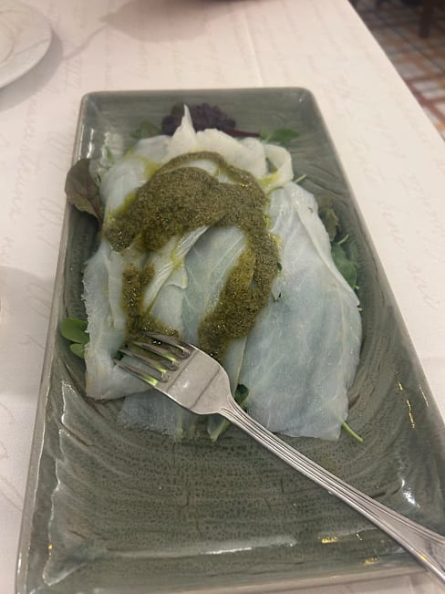 3.5/10Unfortunately, our experience at this restaurant was disappointing, especially given the high reviews. When we arrived, our table wasn’t ready—which was fine—but no one acknowledged us while we waited downstairs for about 10 minutes. We were the only ones there, yet it felt like we were completely overlooked. When I finally asked a staff member, he responded with a poor attitude and said the table was ready, as if we hadn’t been clearly waiting the whole time. We were seated downstairs in a windowless area that felt more like a basement, which added to the discomfort. As for the food: the Caprese pizza was extremely watery, making the crust soggy and unpleasant. The carpaccio was also underwhelming—no seasoning, just thin slices of tilapia on lettuce with some pesto. Overall, it was not the experience we were expecting. I won’t be returning.