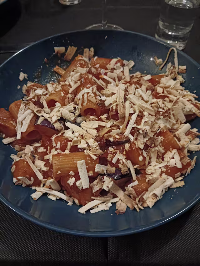 Cosy vinotheque atmosphere with lots of bottles in shelves around the place and along the walls. We had a table next to a whole collection of different ‘volcano’ gins from the Etna surroundings. Food was perfect. Expect the prices on the upper end. Very stylish place with friendly and attentive personnel. Highly recommended to choose and try either a wine from the Etna region or from Sicily. The choice and variety of wines offered are exquisite.