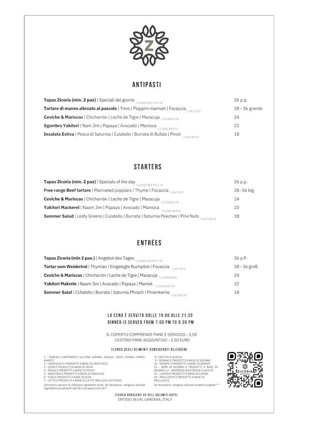 10/10Beautiful atmosphere in this stylish restaurant located adjacent the Hotel Hell (which looked lovely despite the English translation of the name.) Our waitress was both a fine waitress and sommelier. She recommended a fantastic local red Italian wine that went beautifully with the grilled T-bone steak (special) our family ordered. We started with the sample platter of assorted appetizers from their main menu which was fantastic, as was the tiramisu. Great experience.