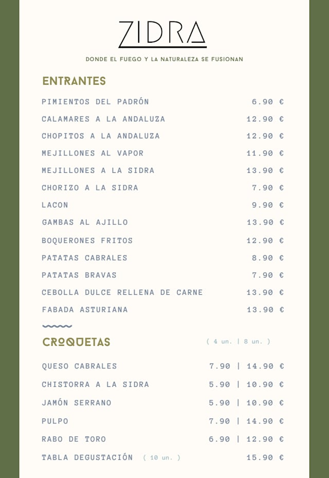 Absolutely amazing food, the Patatas Zidra were delicious, great croquettes, we would have loved to try more but were too full. would highly recommend, quality ingredients and great service.