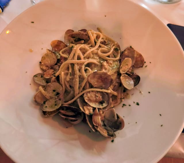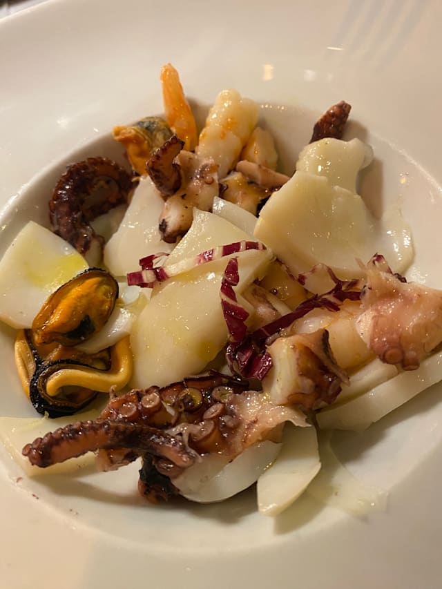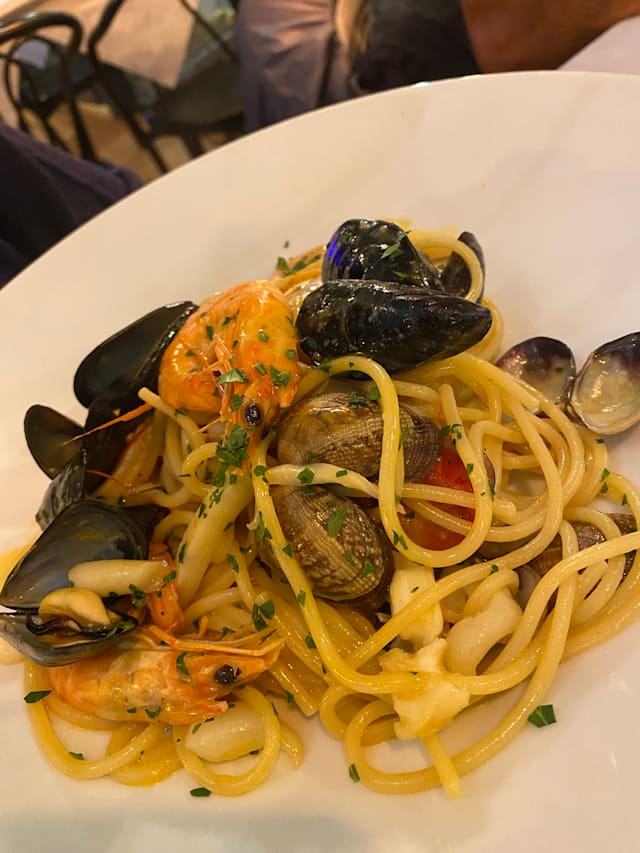10/10A small little corner restaurant with a fantastic outside area. Arrived in Savona an hour before our booking so we took the time to stroll around the area taking in the amazing sight of a Cruise Ship and small marina. Table booked for 13:30 and we were seated straight away. Service fantastic. Food amazing and no problem bringing 3 plates so we could all enjoy the lunch. Home made deserts amazing. Thank you Zio Pesce for making my Mother’s Day lunch an enjoyable experience.
