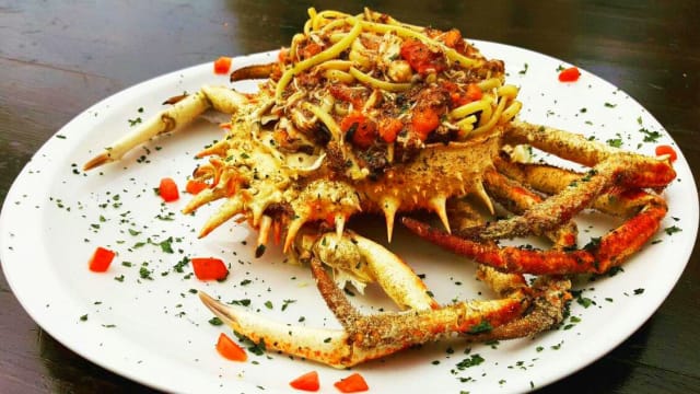 - Cozze, vongole, calamari, mazzancolle, seppie, gamberone, pachino mantecati con bisque di crostacei