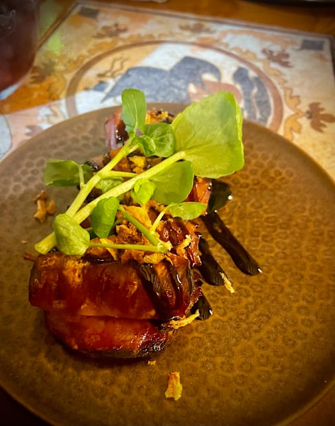 9/10Beautiful food, the dates wrapped in bacon and aubergine dip were a highlight