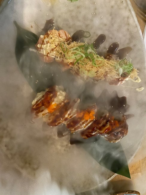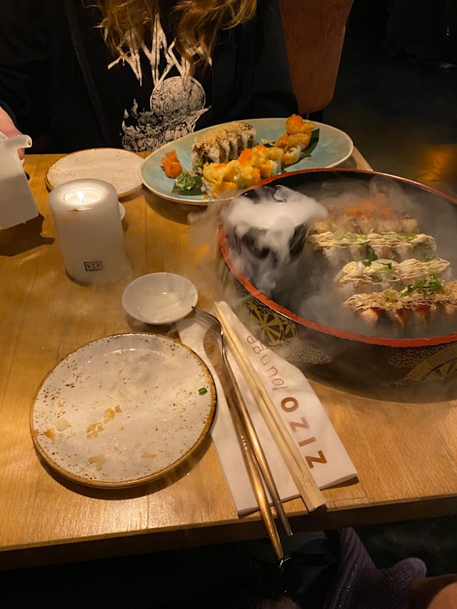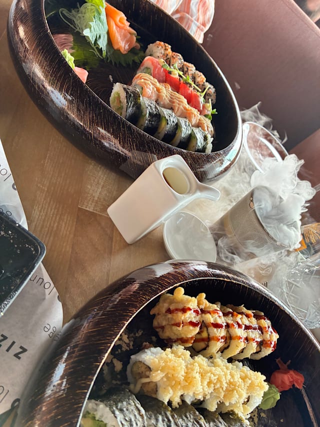 8.5/10We were in the restaurant this evening. One of us had the tuna which was good, but not the biggest on portion size. We'd recommend to order a side with that. I had the vegan sushi menu, which was quite the portion in comparison so that I could shar so we were both satisfied. The cocktails were tasty. The only thing I did not like, which isn't crucial if you aren't vegan (and there are few sushi restaurants I've been to that didn't have the same problem), that there were some of those orange roes on my sushi rolls and in the wasabi. I tend to inspect my sushi thoroughly cause I'm used to this problem but for someone with allergies this should be stated when ordering I guess. To sum it up, we had a nice evening at Zizo's