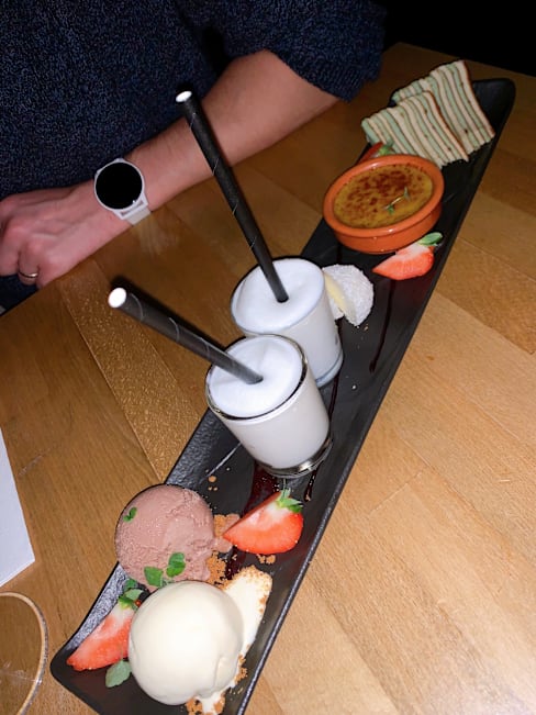 10/10We had a great dinner. The waiter was fun and professional. He offered a digestive that was amazing, and actually I would love to know the name, It was an almond digestive..?!