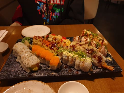 8/10Second time visiting and I've really enjoyed the atmosphere. The waitress was very helpful and allowed us to share some preferences (sushi for two - chef's choice). Flavourwise the flavours were more balanced (regarding the 8 different rolls). However the taste could've been better. Some sushi rolls were still kind of bland tastewise and could've either been more fresh or combined with more complimenting flavours.