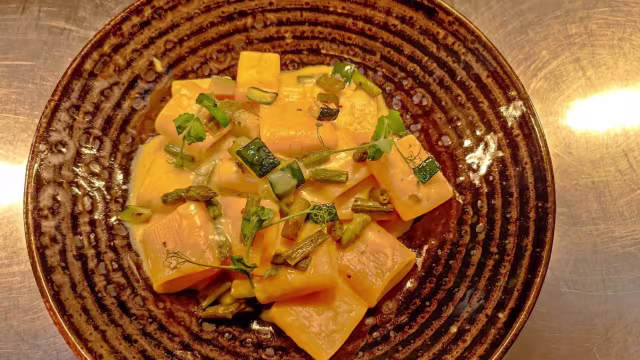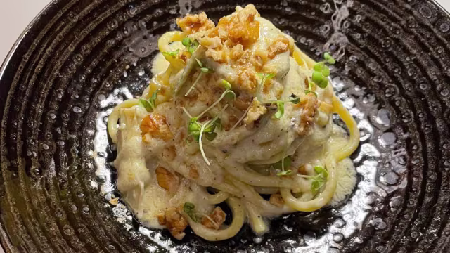 - Casoncelli, burro affumicato, limone, acciughe e mandorle