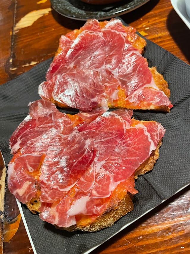 10/10Best place for bellota ham, accompanied with burrata mozzarella and tomatoes, tomato bread, padrón peppers and the best wine by the glass you can imagine! All at very reasonable prices! In a back alley sort of tiny street in gothic quarter, near las ramblas. Don’t miss it! We have been twice in three days.