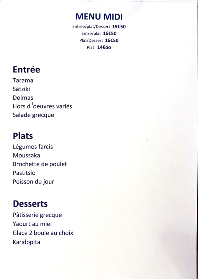 10/10Excellent Greek food in the heart of Paris. Superb service, good wine list and incredibly warm atmosphere.