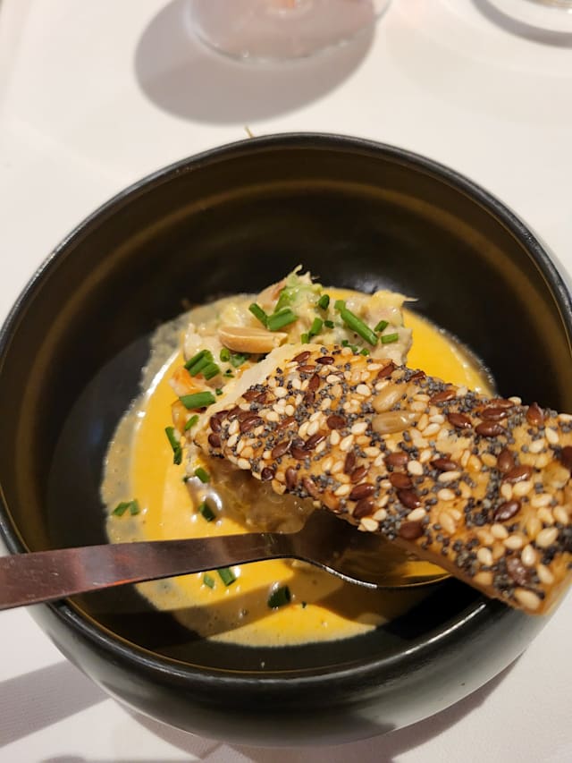 - DAURADE, le dos rôti, aubergine façon Sichuanaise, beurre parfumé au soja et gingembre