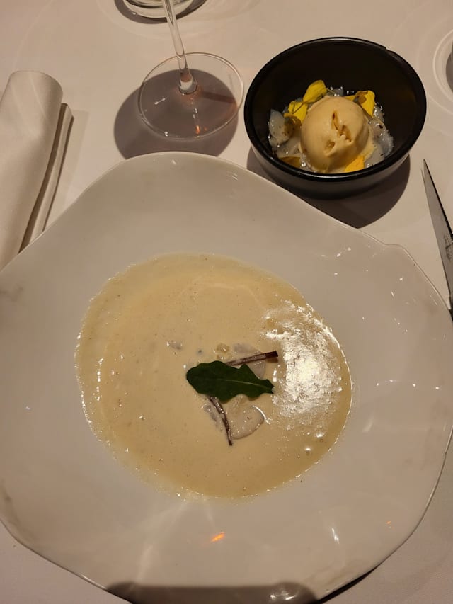 - ANANAS, en carpaccio, lait de coco et rhum, sorbet Pinacolada