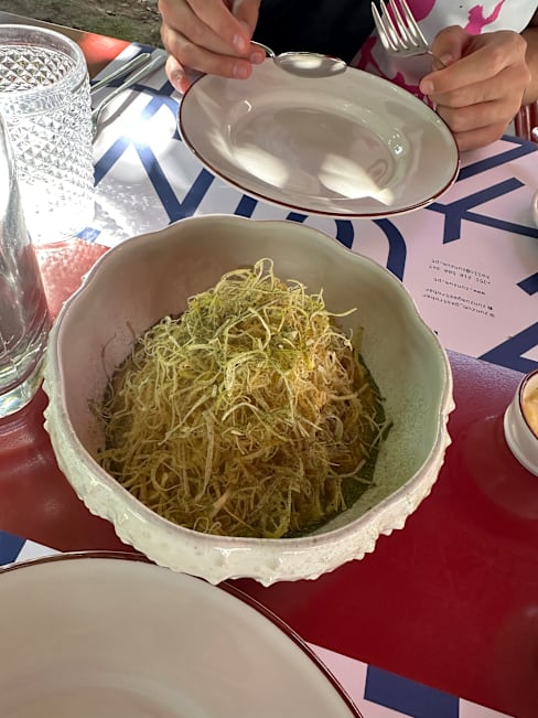 10/10A very affordable place for a restaurant with such delicious cuisine and a Michelin star (well deserved). We sat outside on the veranda, which is located right in the park under a large tree.