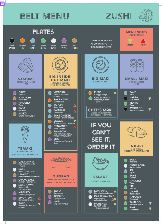 6/10Roll-bar for the food is good but sushi ingridients should be explained more detailed. Menu is too complicated to understand. It should be more easy to understand what is in the coloured plates