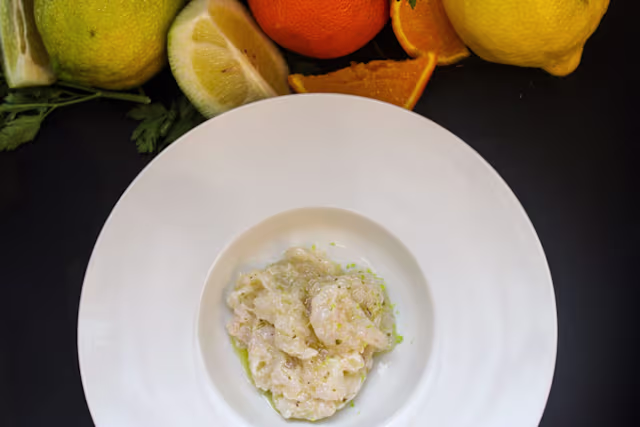 - Tagliatelle cacio e pepe con tartare gambero